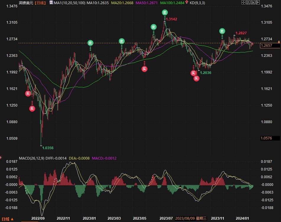英镑/美元小幅走高0.26%,报1.2661。