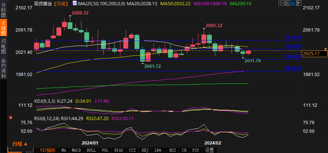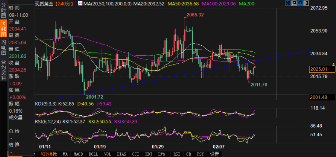 汇通财经APP讯——周二(2月13日),现货黄金价格在2020美元附近徘徊,缺乏明确的方向性。在4小时内从底部回升,盘中报2025.17美元,涨幅0.27%。