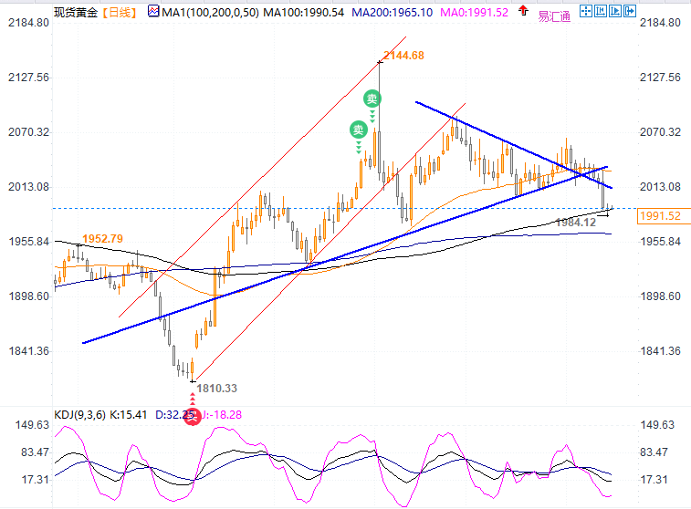 金价若跌破该均线支撑,则下方的200日均线所在的1965将是更重要的考验。