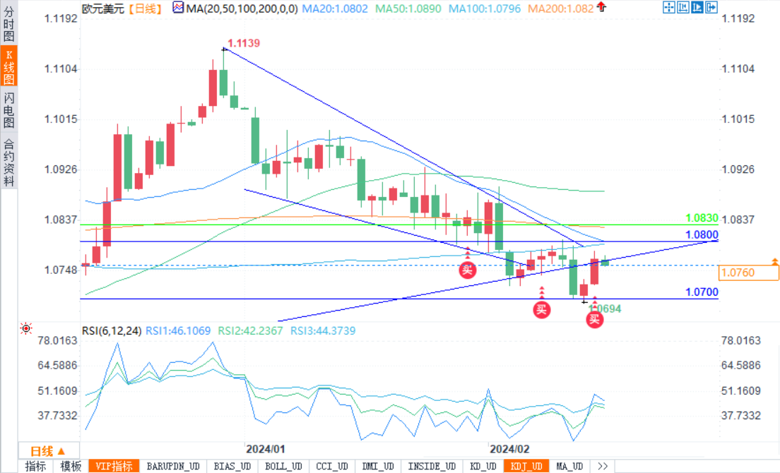 欧元兑美元周四走高,在本周稍早从1.0700的心理位反弹后连续第二天攀升,部分原因是受美国经济数据令人失望的支撑。美国零售贸易数据显示,1月份零售额收缩0.8%,远低于预期的0.1%的温和降幅。