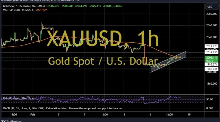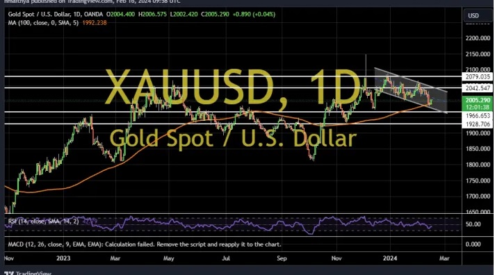 周一(2月19日)亚市早盘,现货黄金小幅上涨,一度触及2020关口,目前交投于2018.32美元/盎司附近,涨幅约0.3%,因美元小幅走弱,给金价提供支撑。FXDailyReport分析师Nicholas Kitonyi撰文,对黄金后市走势进行分析。