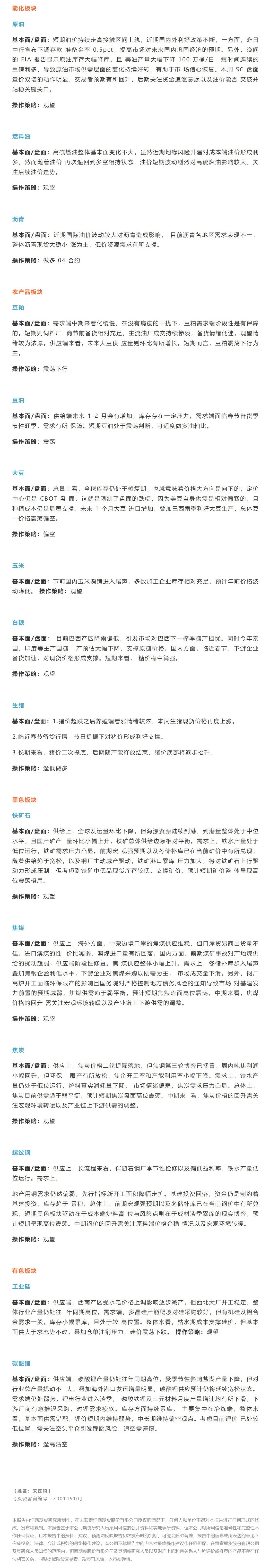 汇通财经APP讯——以下是恒泰期货今日早间交易策略,覆盖品种有:宏观分析、原油燃料油等能源化工、豆粕豆油大豆玉米白糖生猪等农产品、黑色系如铁矿石焦煤焦炭螺纹钢、有色系如工业硅碳酸锂等。恒泰期货公司授权由“专注国内期货衍生品交易的专业行情分析资讯网站”:【汇通财经 www.fx678.com 】转发