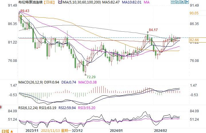 北京时间2月20日11:35 布伦特原油主力合约 报 82.64 美元/桶