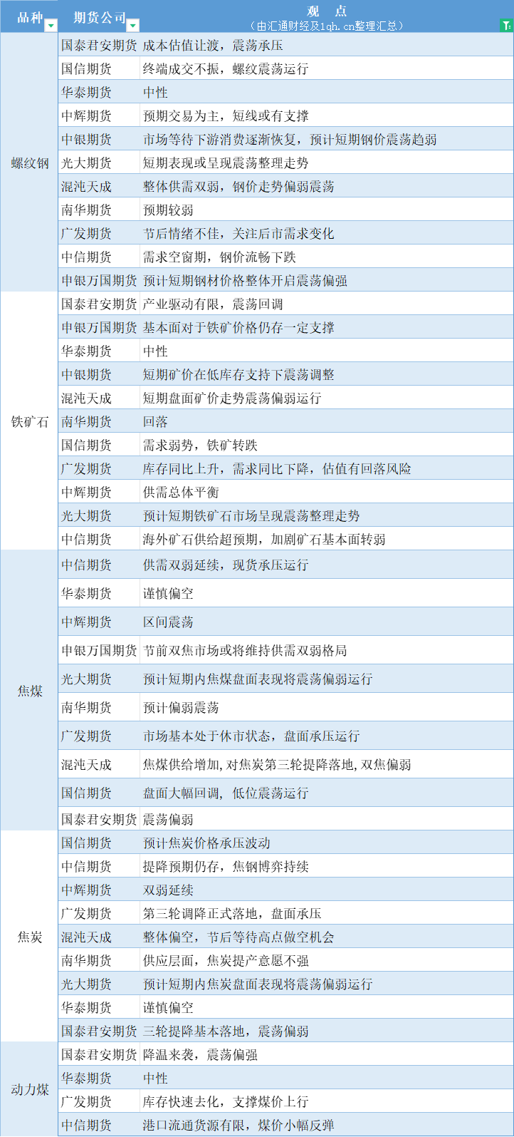 汇通财经APP讯——期货公司观点汇总一张图:2月20日黑色系(螺纹钢、焦煤、焦炭、铁矿石、动力煤等)