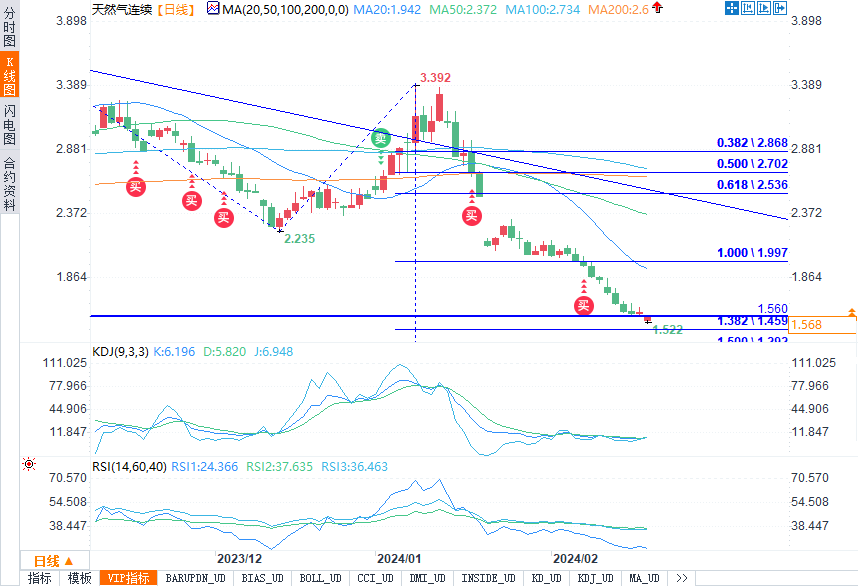 汇通财经APP讯——周一(2月19日),天然气连续交易价格继续下跌,盘中报1.568,跌幅2.55%。