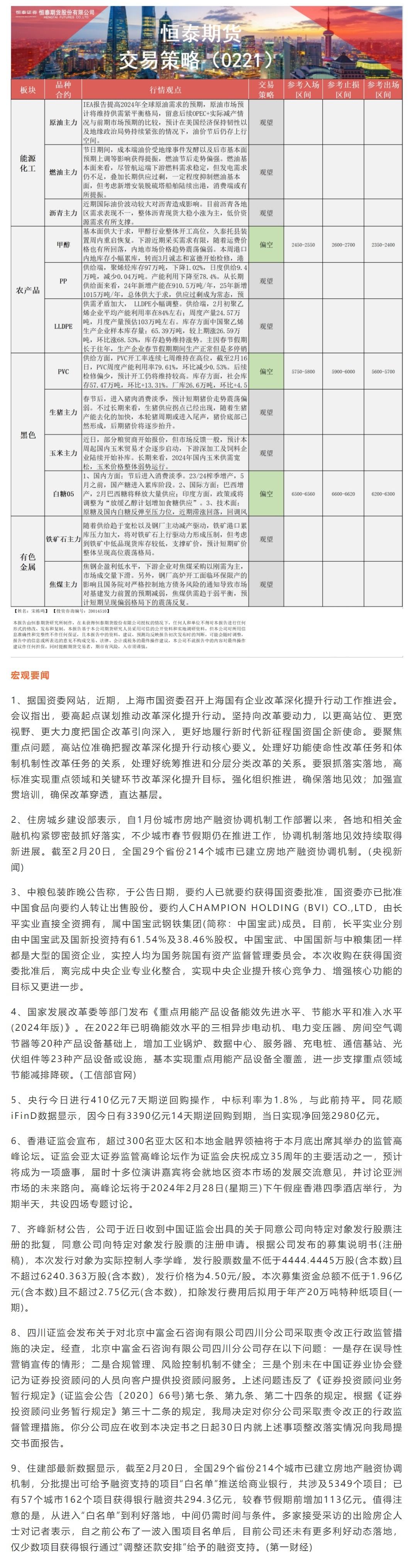 汇通财经APP讯——以下是恒泰期货今日早间交易策略,覆盖品种有:宏观分析、原油燃料油等能源化工、豆粕豆油大豆玉米白糖生猪等农产品、黑色系如铁矿石焦煤焦炭螺纹钢、有色系如工业硅碳酸锂等。恒泰期货公司授权由“专注国内期货衍生品交易的专业行情分析资讯网站”:【汇通财经 www.fx678.com 】转发