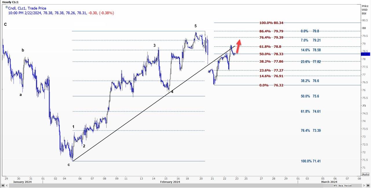 标题:原油周五下跌但未来几天可能回升,美油可能重新测试78.80阻力位
