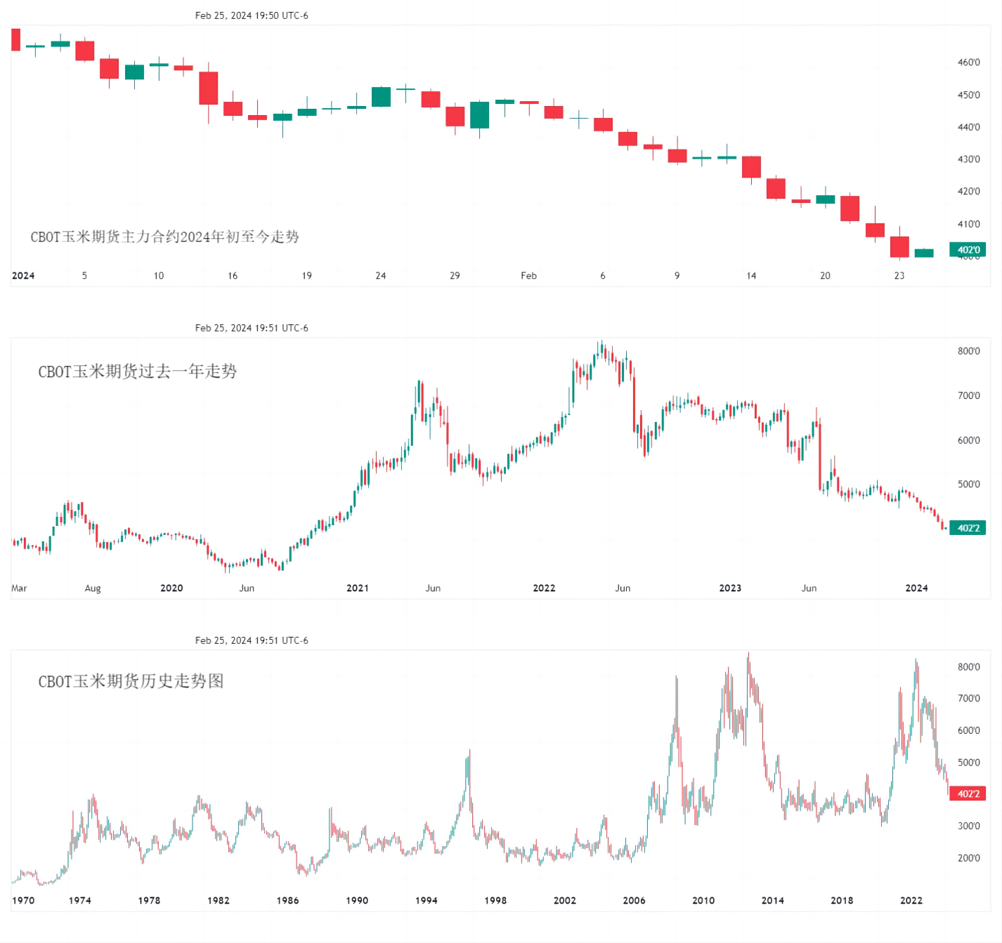 主要用于动物饲料和生物燃料的玉米库存增加,给价格带来了不利因素,2024年年初至今,玉米价格下跌了近12%。