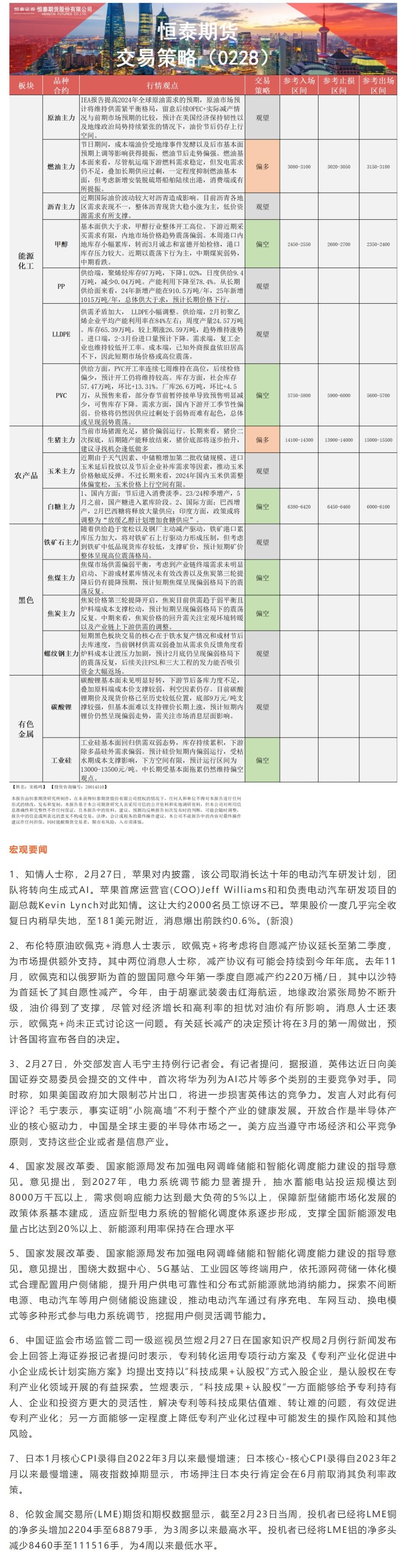 汇通财经APP讯——以下是恒泰期货今日早间交易策略,覆盖品种有:宏观分析、原油燃料油等能源化工、玉米白糖生猪等农产品、黑色系如铁矿石焦煤焦炭螺纹钢、有色系如工业硅碳酸锂等。恒泰期货公司授权由“专注国内期货衍生品交易的专业行情分析资讯网站”:【汇通财经 www.fx678.com 】转发