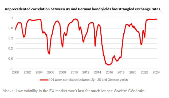 例如,英镑/美元的汇率在一个异常狭窄的区间内交易,而欧元/美元的汇率已经从低点回升,停留在1.08左右。波动有限是因为市场预期全球主要央行将在年中开始降息。