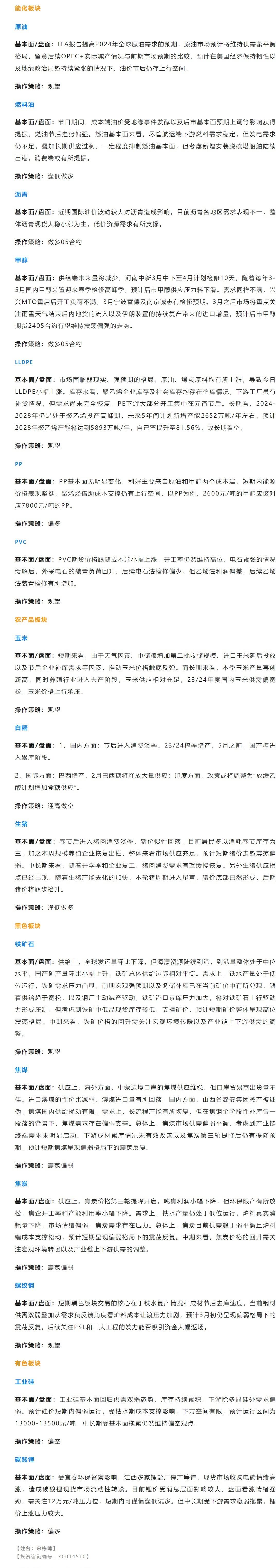 汇通财经APP讯——以下是恒泰期货今日早间交易策略,覆盖品种有:宏观分析、原油燃料油沥青等能源化工、玉米白糖生猪等农产品、黑色系如铁矿石焦煤焦炭螺纹钢、有色系如工业硅碳酸锂等。恒泰期货公司授权由“专注国内期货衍生品交易的专业行情分析资讯网站”:【汇通财经 www.fx678.com 】转发