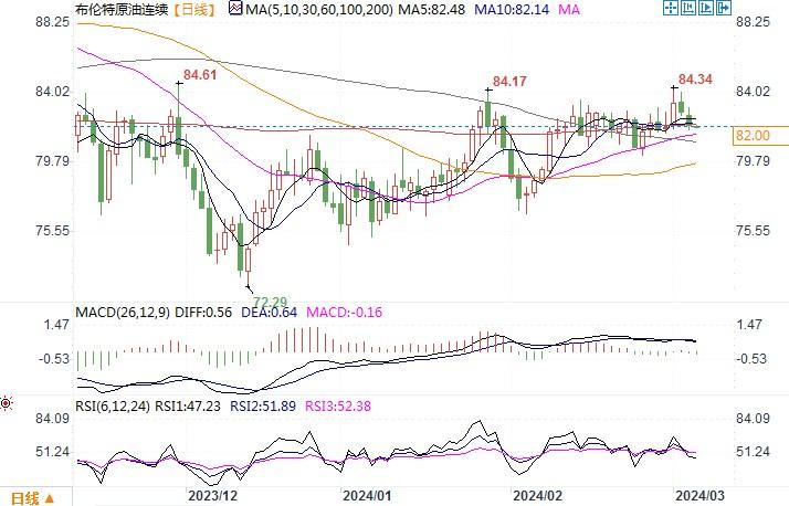 北京时间3月6日10:46 布伦特原油连续 报 82.11美元/桶