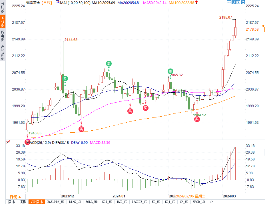 现货黄金收涨089%,收报2178.95美元/盎司。COMEX 4月黄金期货收涨0.94%,收报2185.5美元/盎司。COMEX 5月白银期货收跌0.12%,报24.549美元/盎司。