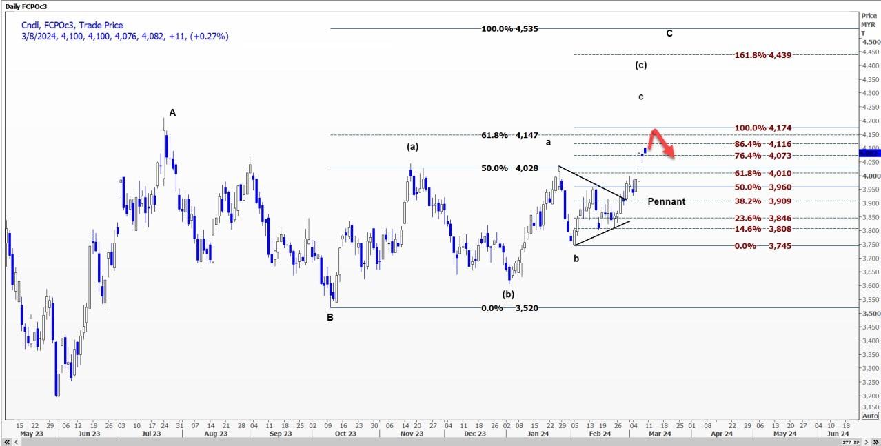 标题:马棕油录得第三周上涨,可能上探4106-4158林吉特