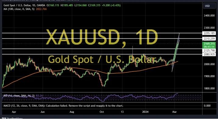 汇通财经APP讯——周一(3月11日)亚市早盘,现货黄金冲高回落,一度高见2188.88美元/盎司,逼近上周创下的历史新高2195.07美元,目前回落至2180美元附近,FXDailyReport分析师Nicholas Kitonyi撰指出,多头目标看向2220-2255附近区域。