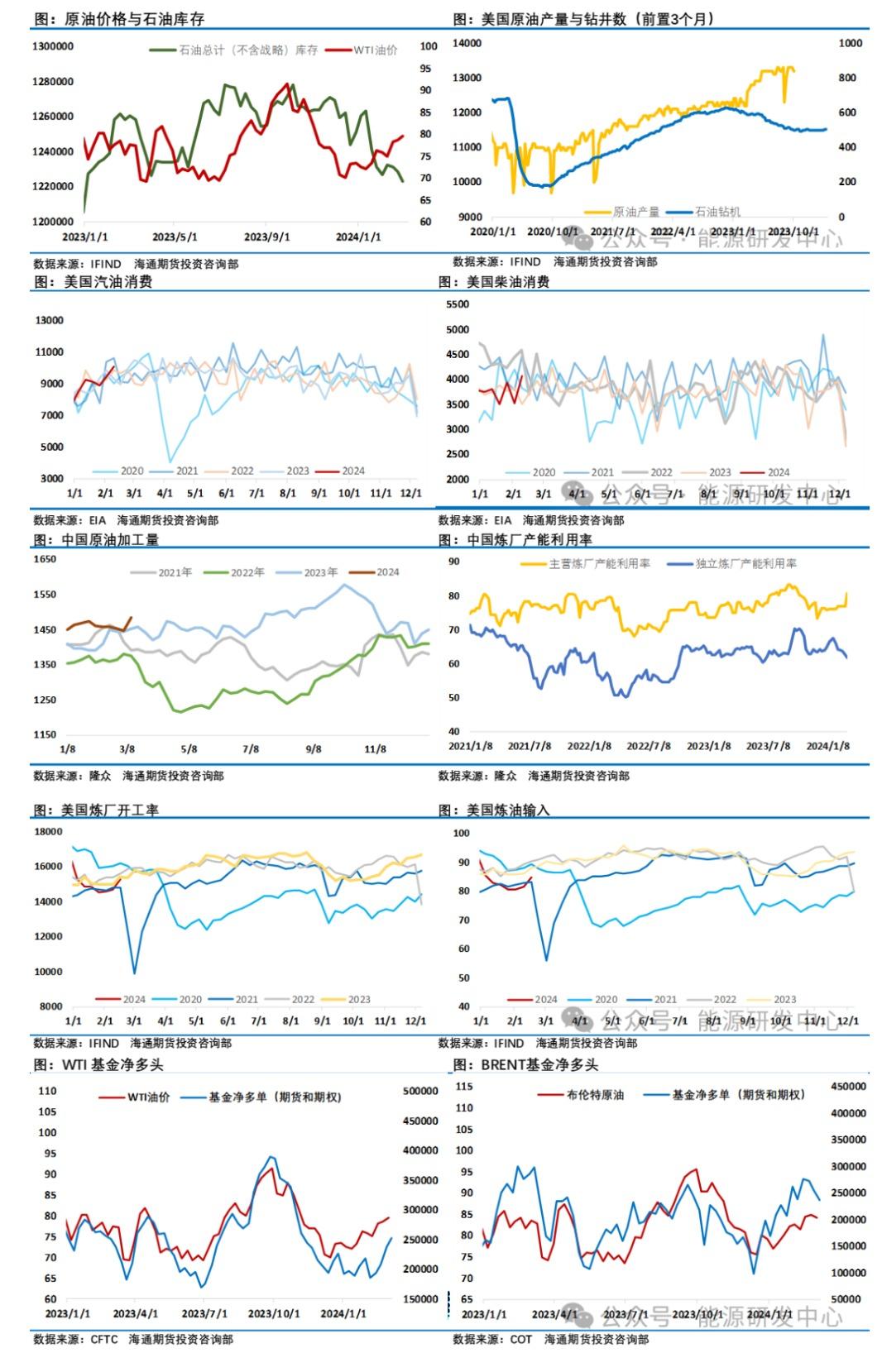 虽然市场对欧佩克+减产是否足量是一直保持怀疑,但毫无疑问在欧佩克+减产努力下石油市场供需平衡是处在一个相对健康的状态,最新一期的EIA数据显示03月01日当周美国国内原油产量减少10.0万桶至1320.0万桶/日。除却战略储备的商业原油库存增加136.7万桶至4.49亿桶,增幅0.31%。03月01日当周美国战略石油储备(SPR)库存增加70.6万桶至3.61亿桶,增幅0.2%。库欣库存增加70.1万桶,汽油库存减少446桶,预期减少164万桶;精炼油库存减少413万桶,预期减少66.5万桶。另外富查伊拉、新加坡等地周度数据均显示油品库存下降,石油市场库存整体继续下降显示了目前市场处在一个相对健康的状态,最新的沙特阿美将4月运往亚洲的阿拉伯轻质原油OSP设定为每桶较阿曼迪拜均价升水1.70美元,略高于此前的升水1.50美元,也显示了石油市场供需紧平衡状态。原油加工量方面,上周中美都有了明显提升,值得一提的是上周中国主营炼厂开工率大幅提升,独立炼厂开工率则持续回落,除了检修因素炼油利润被挤压也是地炼将开工率的重要因素。美国原油表需有显著走强,超历史同期平均水平。同时,炼厂角度的加工量环比有大幅增长,美国炼厂的检修季步入尾声,炼厂表现环比走强。成品油表需环比有大幅走强,各类主要油品表需走势较为强势。出行方面,主要油品汽油和航煤环比都有不同程度走强;工业油品方面,馏分油大幅走强,但丙烷&丙烯有明显回落。