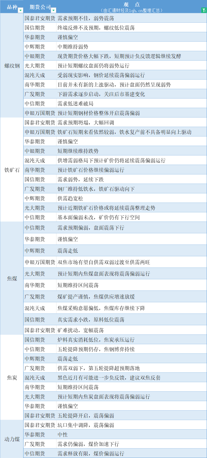 汇通财经APP讯——期货公司观点汇总一张图:3月12日黑色系(螺纹钢、焦煤、焦炭、铁矿石、动力煤等)