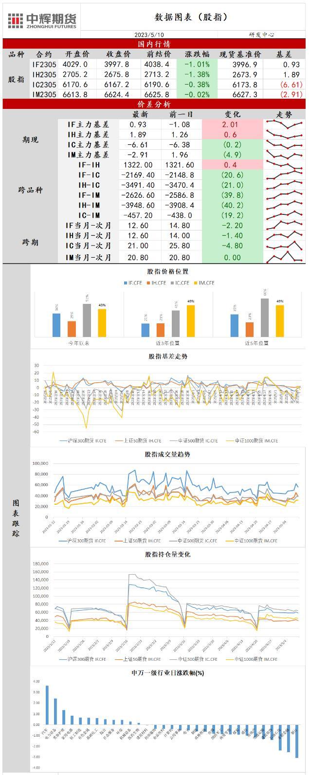 中辉期货股指日报20230510:上行动能不足,股指偏弱震荡