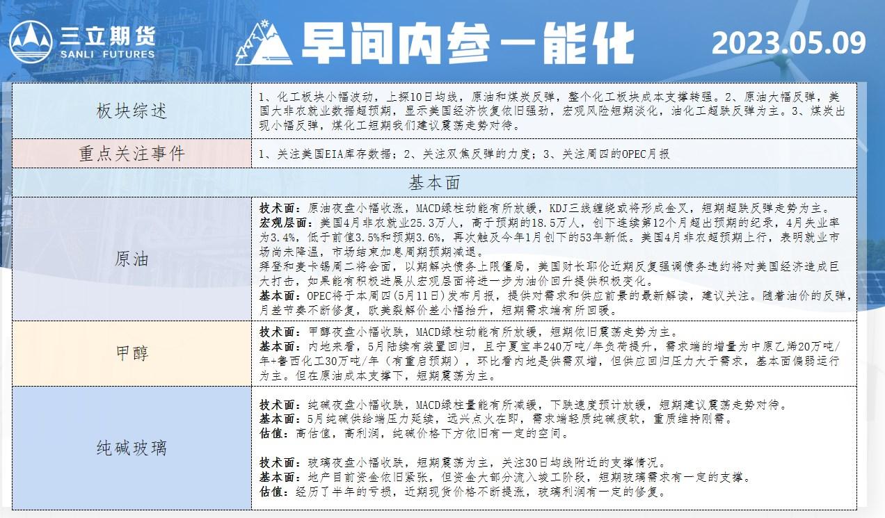 三立期货5月9日早间内参——能化
