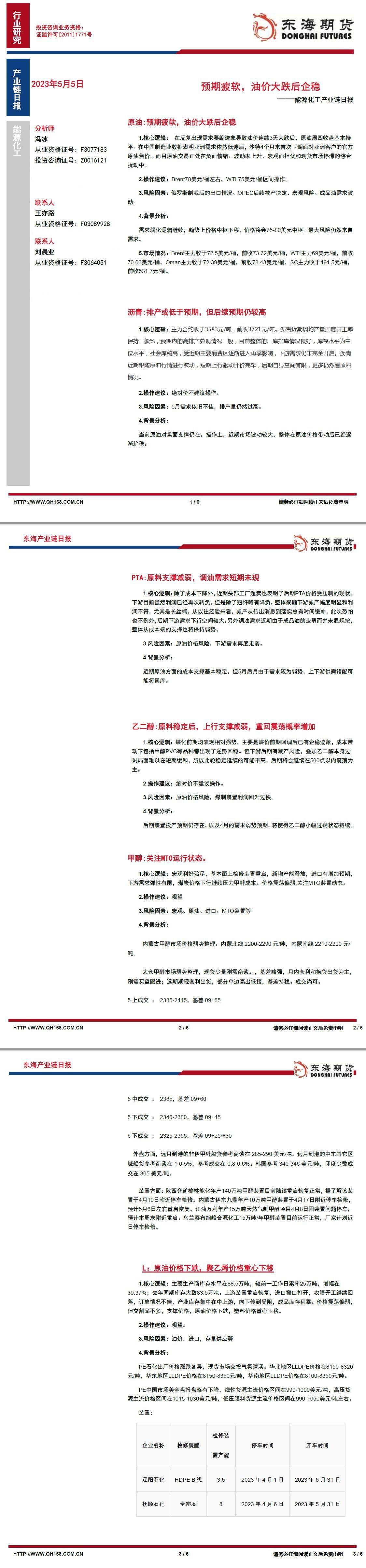 中信建投期货5月5日能源化工报告