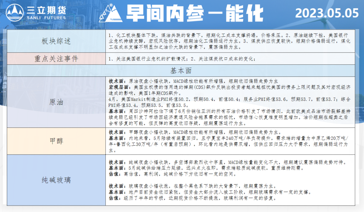 三立期货5月5日早间内参——能化