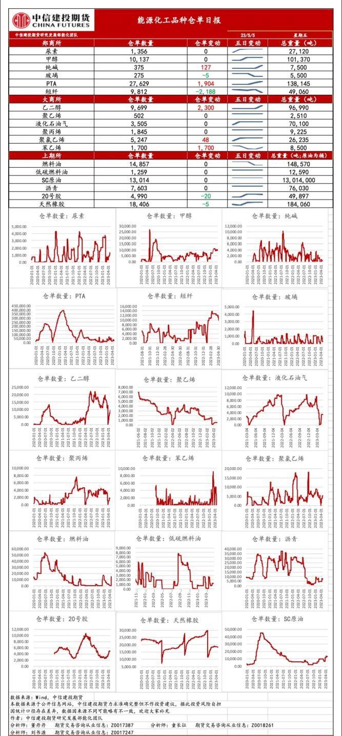 中信建投期货5月5日能化基差与仓单报告