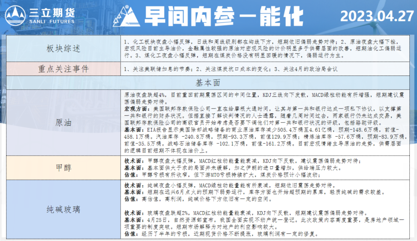 汇通财经APP讯——三立期货早间内参显示,原油短期建议震荡偏弱走势对待;甲醇技术面建议短线震荡偏弱走势对待;玻璃技术面建议震荡偏弱走势对待。三立期货授权文本由“专注期货开户交易及专业行情分析资讯网站”...