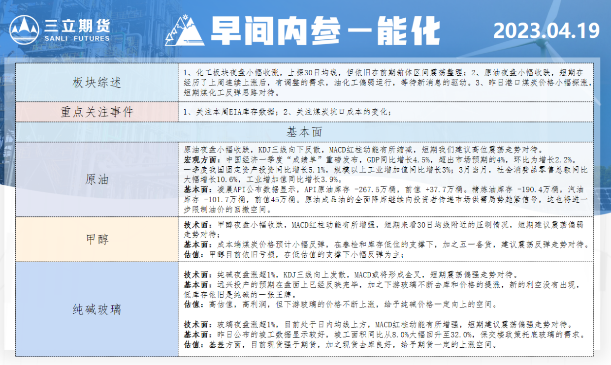 汇通财经APP讯——三立期货早间内参显示,原油建议高位震荡走势对待;甲醇基本面短期震荡反弹走势对待;玻璃技术面短期震荡偏强走势对待。三立期货授权文本由“专注期货开户交易及专业行情分析资讯网站”【一期货...