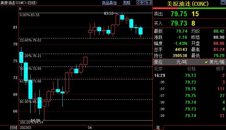 汇通财经APP讯——周三(4月19日),国际油价跌创逾两周新低,市场担心美联储继续加息可能会减缓经济增长并抑制石油消费,抵消了美国库存下降和中国经济数据强劲的积极影响。NYMEX原油料跌破79美元关口...