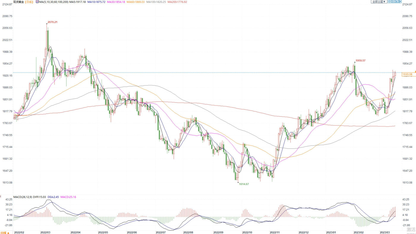 现货黄金交易策略:银行业危机担忧情绪回落,警惕金价见顶风险