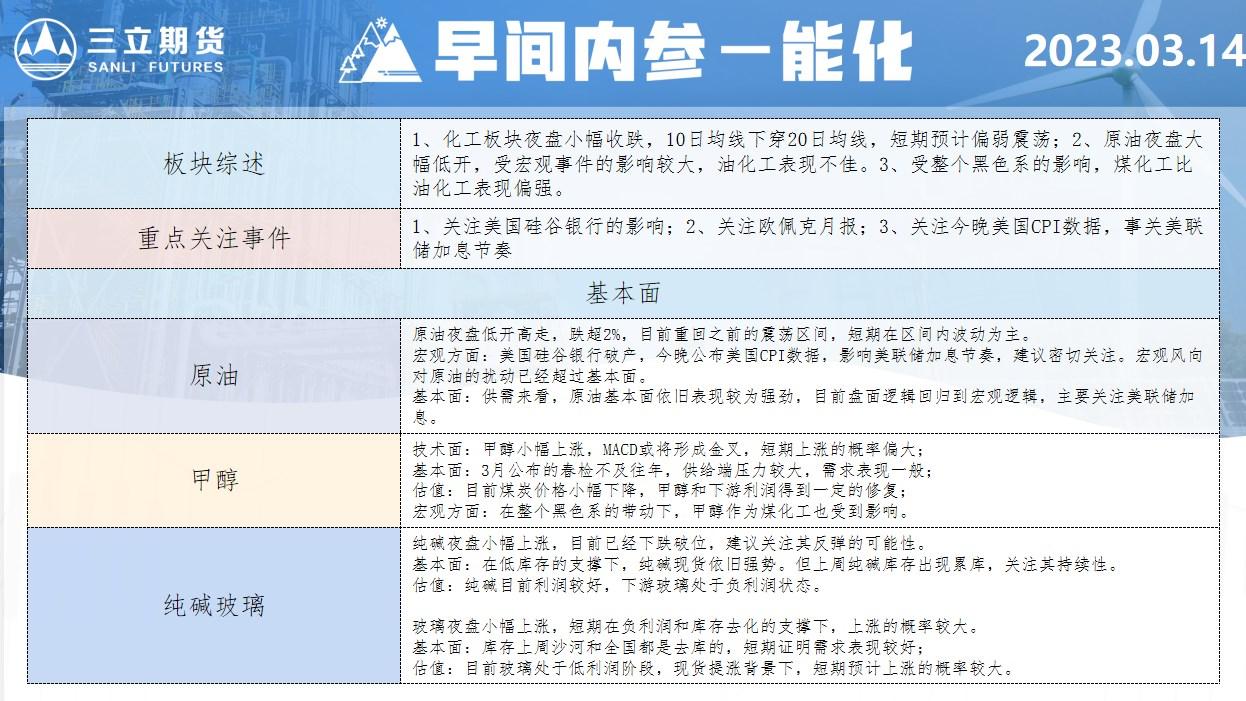 汇通财经APP讯——三立期货早间内参显示,原油短线在区间内波动为主,甲醇短期上涨的概率偏大;玻璃短线上涨的概率较大。三立期货授权文本由“专注期货开户交易及专业行情分析资讯网站”【一期货 www.1qh...