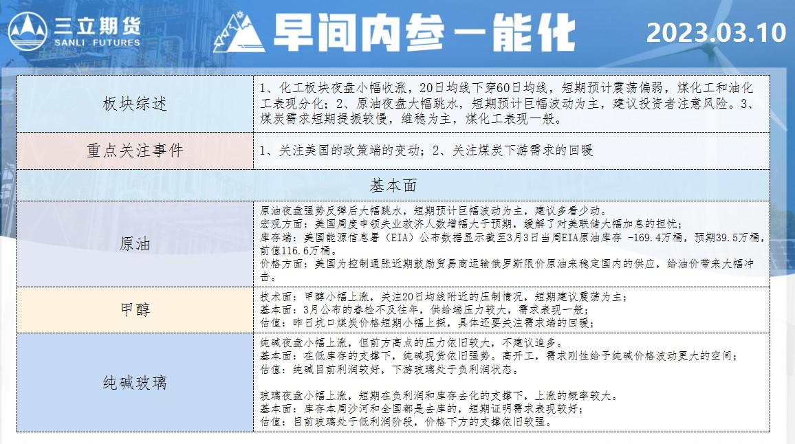 三立期货3月10日早间内参——能化
