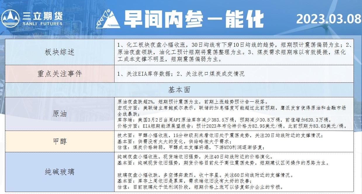 汇通财经APP讯——三立期货早间内参显示,原油短线预计震荡为主,甲醇成本支撑坍塌;玻璃多空博弈激烈。三立期货授权文本由“专注期货开户交易及专业行情分析资讯网站”【一期货 www.1qh.cn】转发。