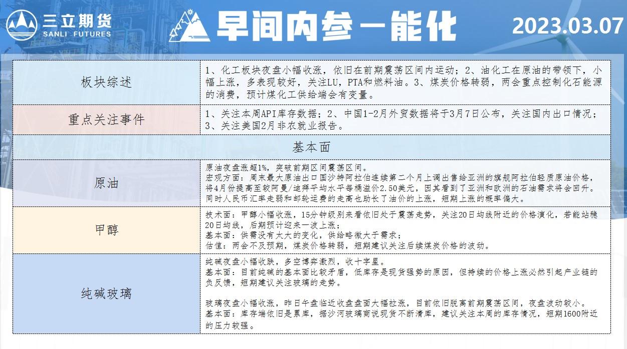 三立期货3月7日早间内参——能化
