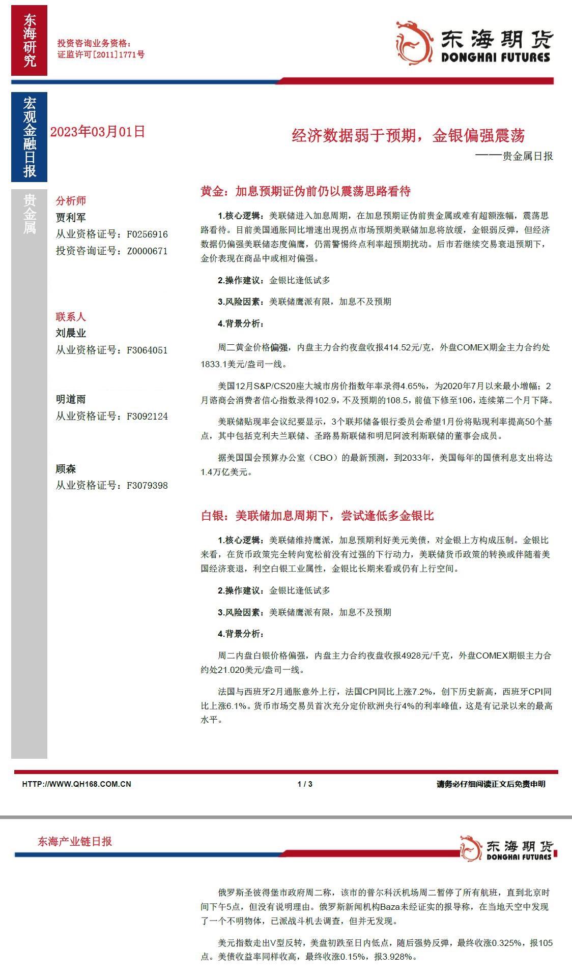汇通财经APP讯——3月2日,长安期货发布早间看盘,建议沪金和沪银逢高沽空,螺纹逢低做多,原油区间短差;菜油继续持有空单,生猪多单逢高减仓,保护盈利。 长安期货公司授权文本由“专注期货开户交易及专业行...