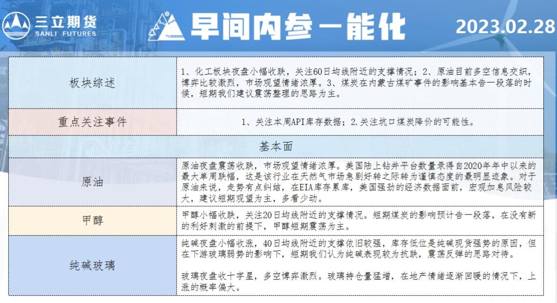 三立期货2月28日早间内参——能化