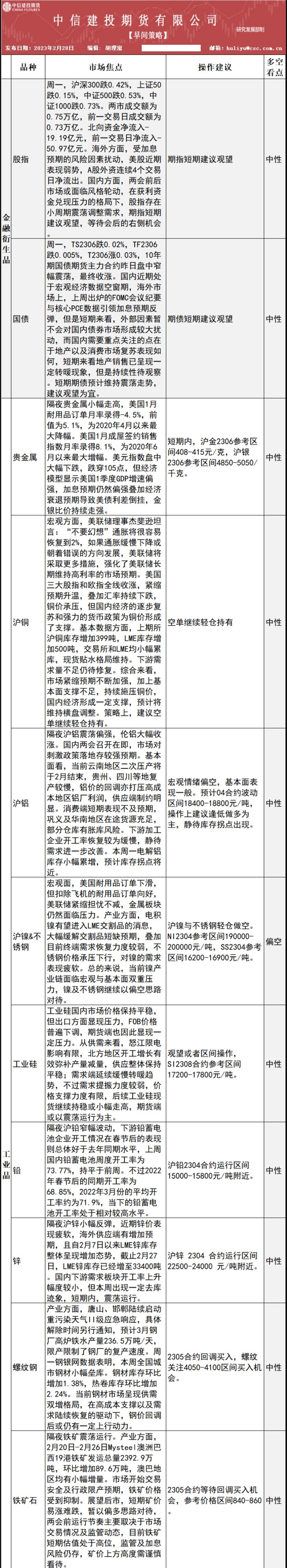 中信建投期货2月28日早间交易策略