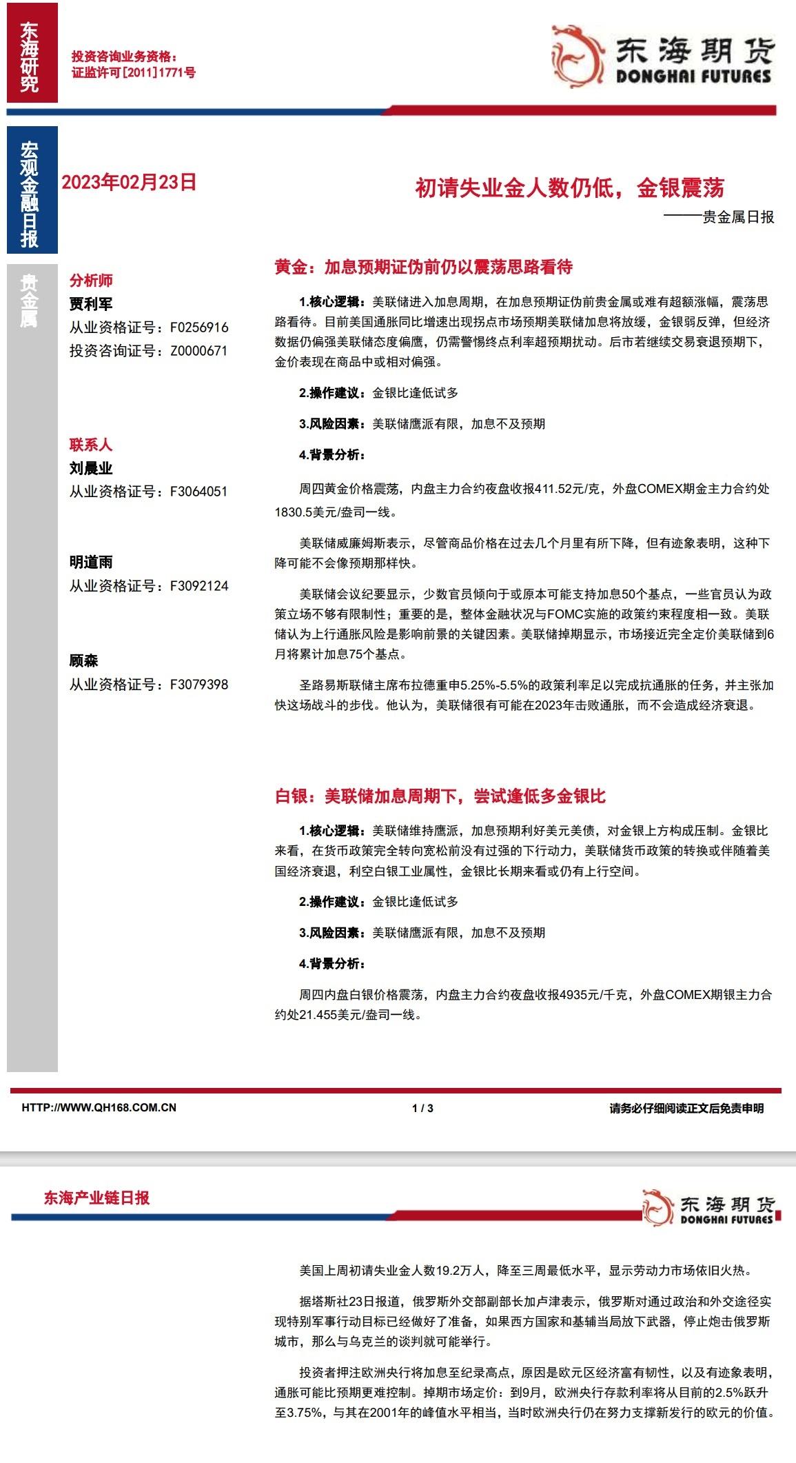 2月25日财经早餐:金价触及八周最低,关注美联储加息脚步