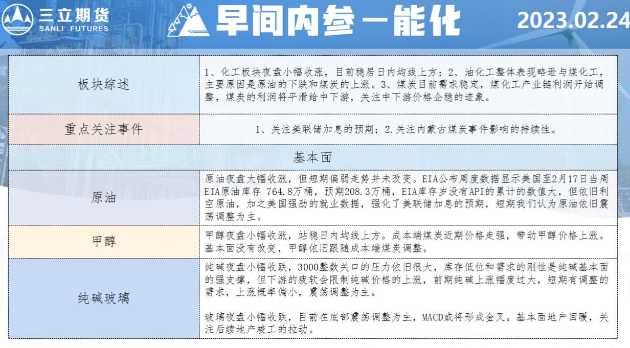 汇通财经APP讯——三立期货早间内参显示,原油依旧震荡调整为主,甲醇依旧跟随成本端煤炭调整,玻璃目前在底部震荡调整为主。三立期货授权文本由“专注期货开户交易及专业行情分析资讯网站”【一期货 www.1...