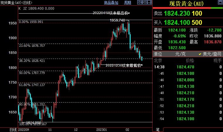 汇通财经APP讯——周五(2月17日),国际金价续跌,并创去年12月末以来新低至1823.19美元/盎司,原因是投资者担心美联储在一系列强劲的经济数据公布后会进一步加息。金价后市下看1788美元。北京...