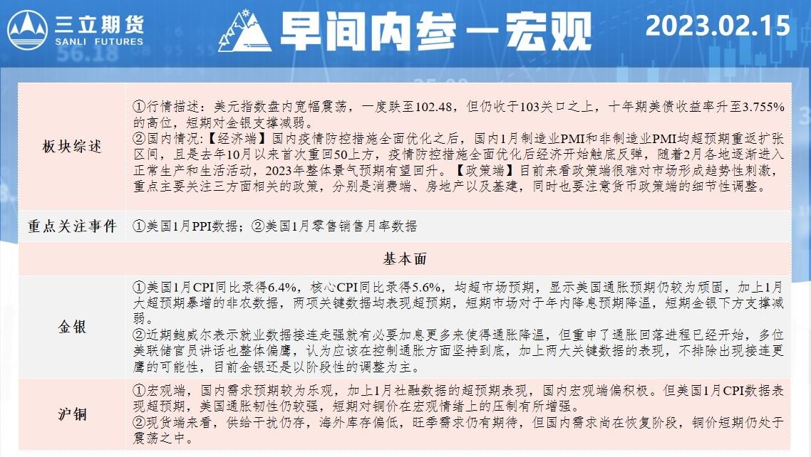 汇通财经APP讯——2月15日,中辉期货发布宏观早报,称海外经济标通胀减缓但仍居高位,美欧央行表态持续偏鹰,压制市场情绪,本周美国通胀数据顽固,市场受压制。 中辉期货公司授权文本由“专注期货开户交易及...