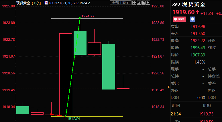 汇通财经APP讯——北京时间周三(1月18日)21:30,美国公布12月生产者价格指数显著走低,12月零售销售大幅萎缩,强化美联储进一步放慢加息步伐预期。截至发稿,现货黄金上涨逾6美元至1924.22...