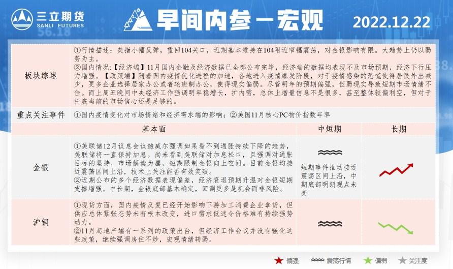 汇通财经APP讯——三立期货早间内参显示,金银中短期偏震荡,短期事件推动,接近震荡区间上沿,中期底部明朗观点未变,长线偏多;沪铜中短线偏向震荡,长线偏空。三立期货期货公司授权文本由“专注期货开户交易及...