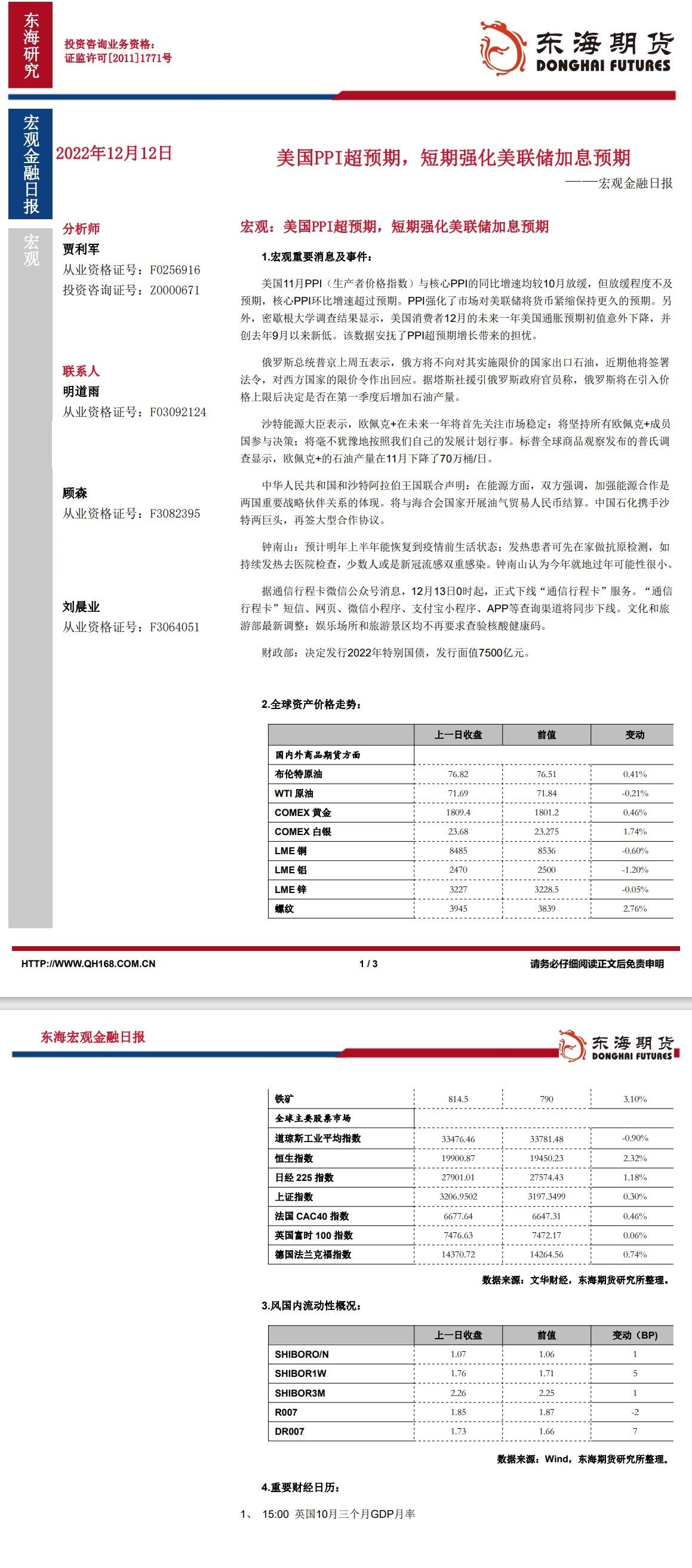 汇通财经APP讯——12月12日,机构对股市、大宗商品、外汇、经济前景以及央行政策前景观点汇总:1.OANDA高级市场分析师前瞻美国11月CPI;在美国生产者价格指数(PPI)上涨超过预期之后,OAN...