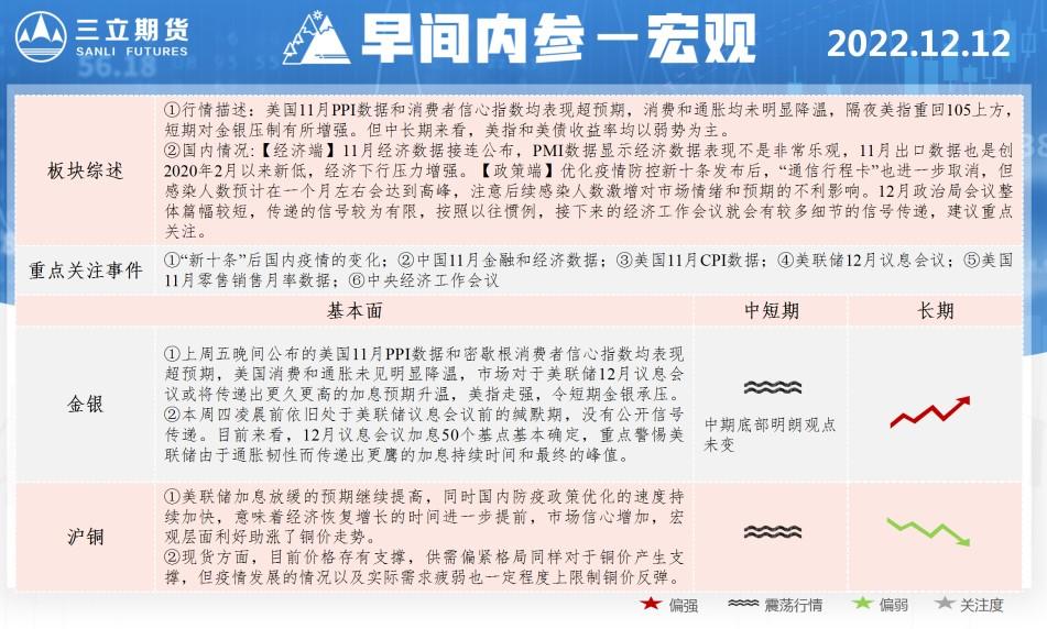 汇通财经APP讯——三立期货早间内参显示,金银中短期偏震荡,中期底部明朗观点未变,长线偏多;沪铜中短线偏向震荡,长线偏空。三立期货期货公司授权文本由“专注期货开户交易及专业行情分析资讯网站”【一期货 ...