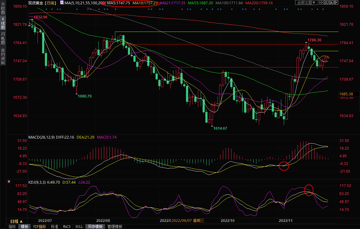 下方关注5日均线1747.13附近支撑,如果失守该支撑,则需要提防金价重新试探9月12日高点1735.02附近支撑的可能性。