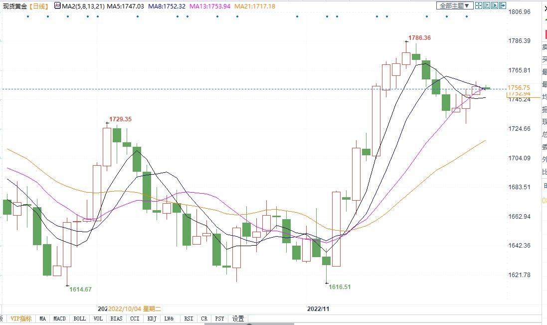 北京时间11月25日8:34,现货黄金报1752.97美元/盎司