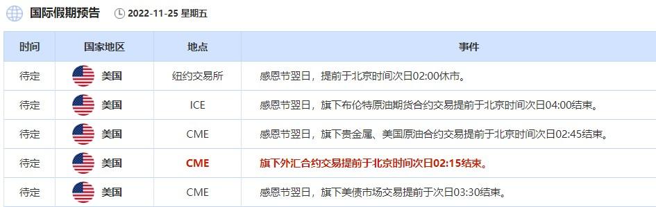 美国市场周四因感恩节休市,流动性较平时偏弱。周五美国市场普遍提前休市,预计整体交投仍将受到限制。