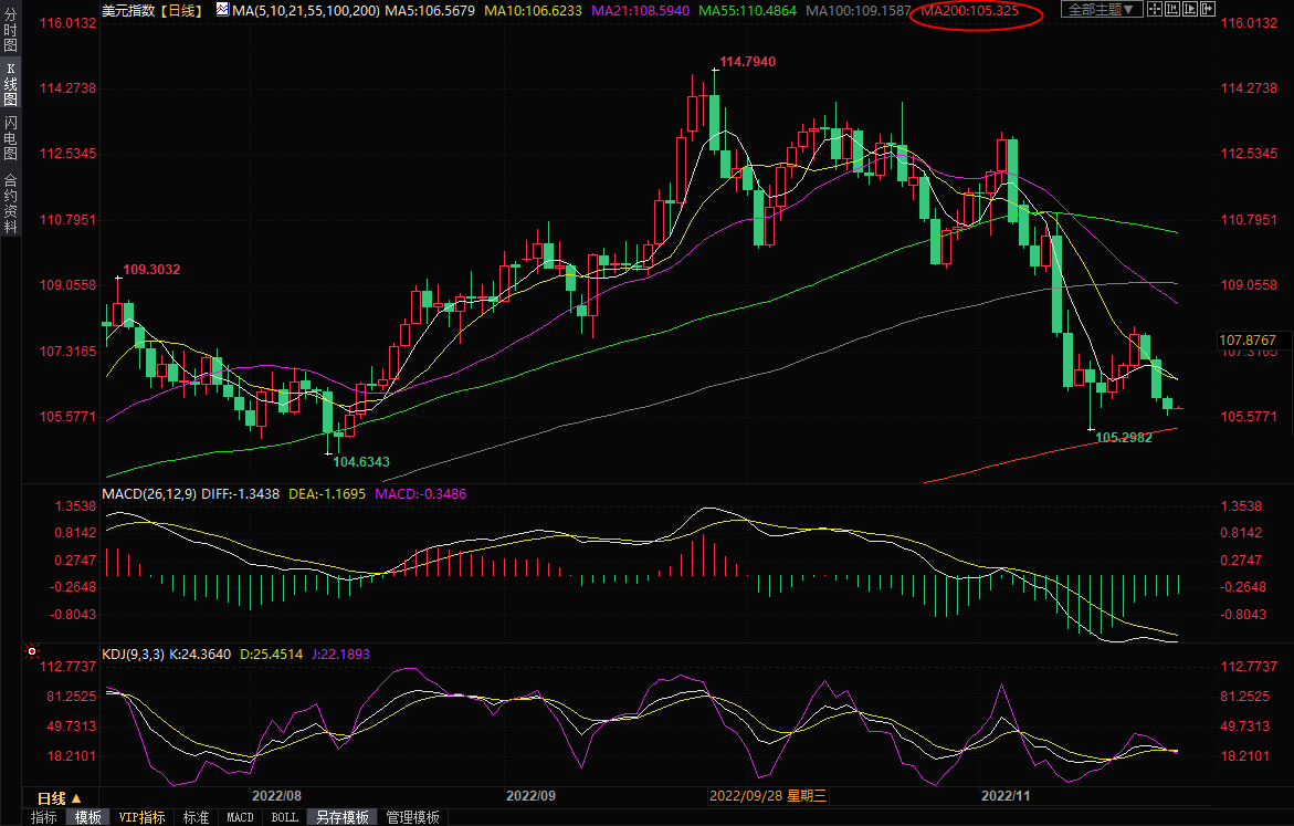 衡量美元兑六个主要竞争货币汇率的美元指数在周三下滑1.1%之后,周四又下跌0.27%,收报105.85,目前200日均线支撑在105.33附近,而且11月15日创下的逾三个月低点支撑也在该位置附近。