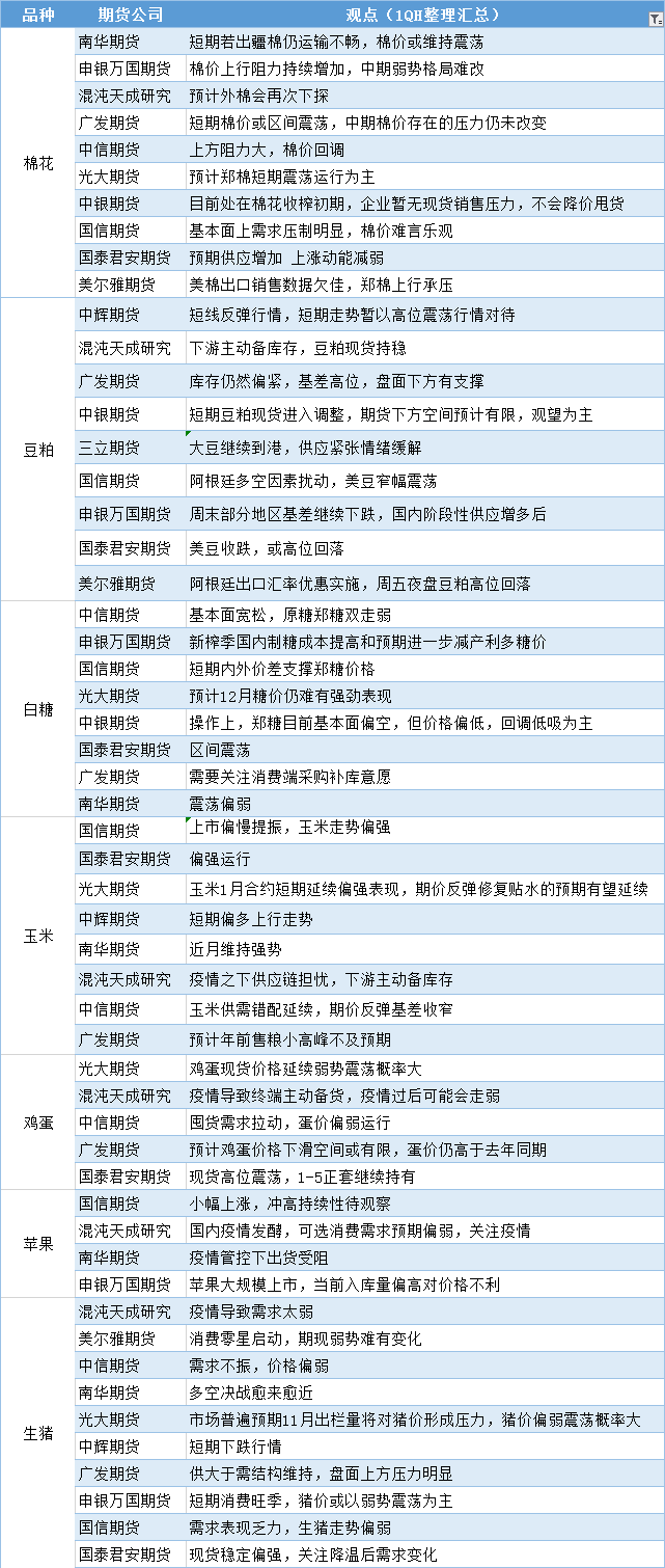 标题:期货公司观点汇总一张图:11月28日农产品(棉花、豆粕、白糖、玉米、鸡蛋、生猪等)